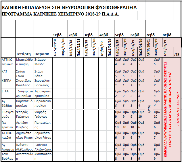 Μάθημα : ΚΛΙΝΙΚΗ ΕΚΠΑΙΔΕΥΣΗ ΣΤΗ ΝΕΥΡΟΛΟΓΙΚΗ ΦΥΣΙΚΟΘΕΡΑΠΕΙΑ (Εργαστήριο)